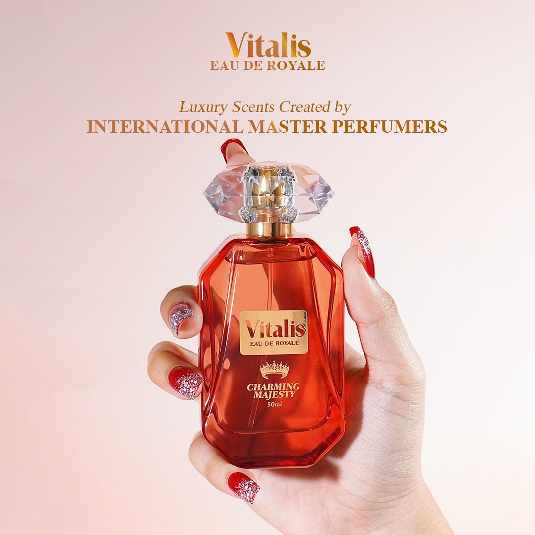 Vitalis Eau de Royale Charming Majesty diciptakan oleh Master Perfumers kelas dunia, untuk para Vitasis yang ingin tampil unforgettable. Diracik dengan ekstrak Tuberose, simbol keanggunan memikat bagi suku Maya, Ylang-Ylang yang dikenal dalam Bahasa Tagalog artinya bunga sebagai simbol "love, sensuality, and beauty", serta Vanilla yang memberikan sentuhan bold dan kesan tak terlupakan. Istimewanya lagi, keharuman parfum ini tahan lama, hingga 10 jam lamanya