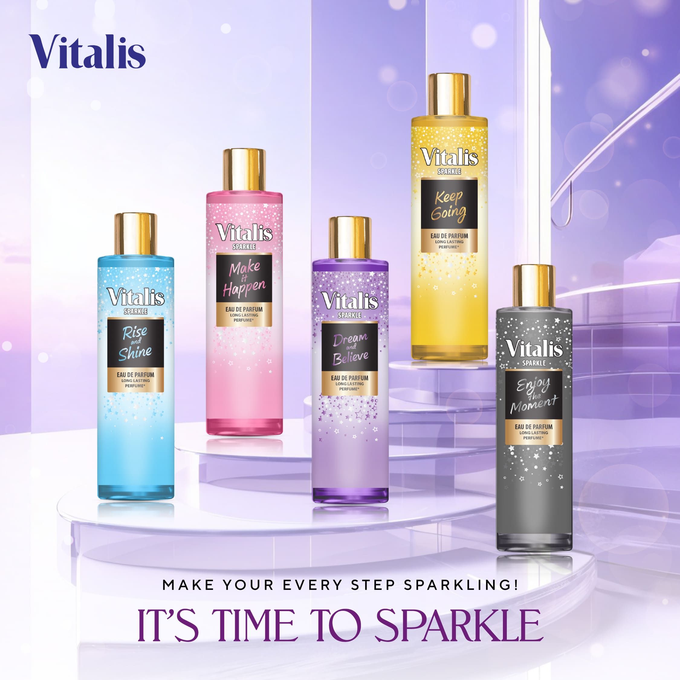 Dari yang manis dan lembut hingga yang berani dan mempesona, Vitalis Eau De Parfum Sparkle siap menemani setiap langkahmu ya, Vitasis! Setiap aroma memiliki karakter unik yang bisa mencerminkan kepribadian serta suasana hatimu.