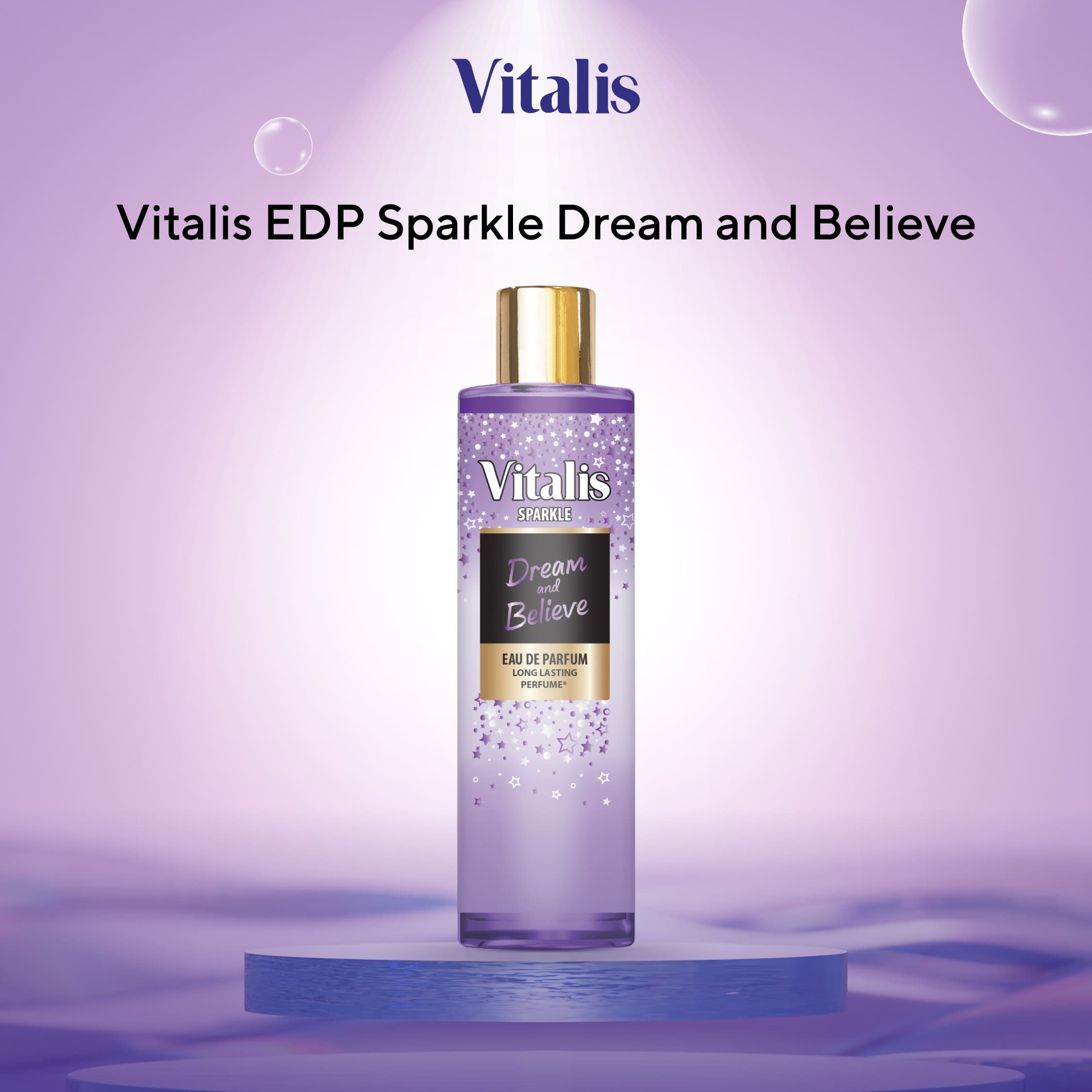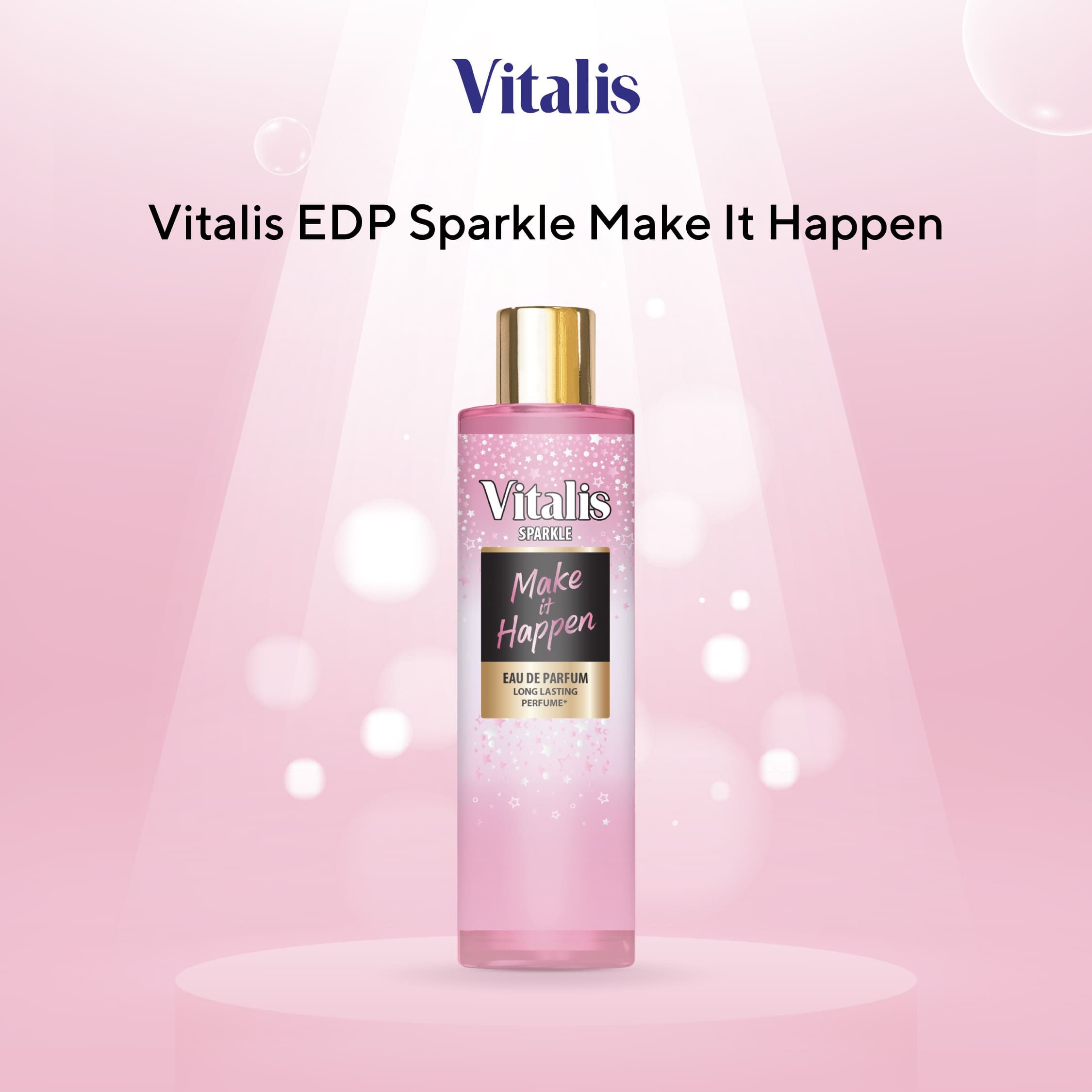 • Vitalis EDP Sparkle Make It Happen - Aroma fruity segar berpadu dengan floral yang lembut dan base notes yang tahan lama. Cocok untuk kamu yang ingin tampil percaya diri dan inspiratif.