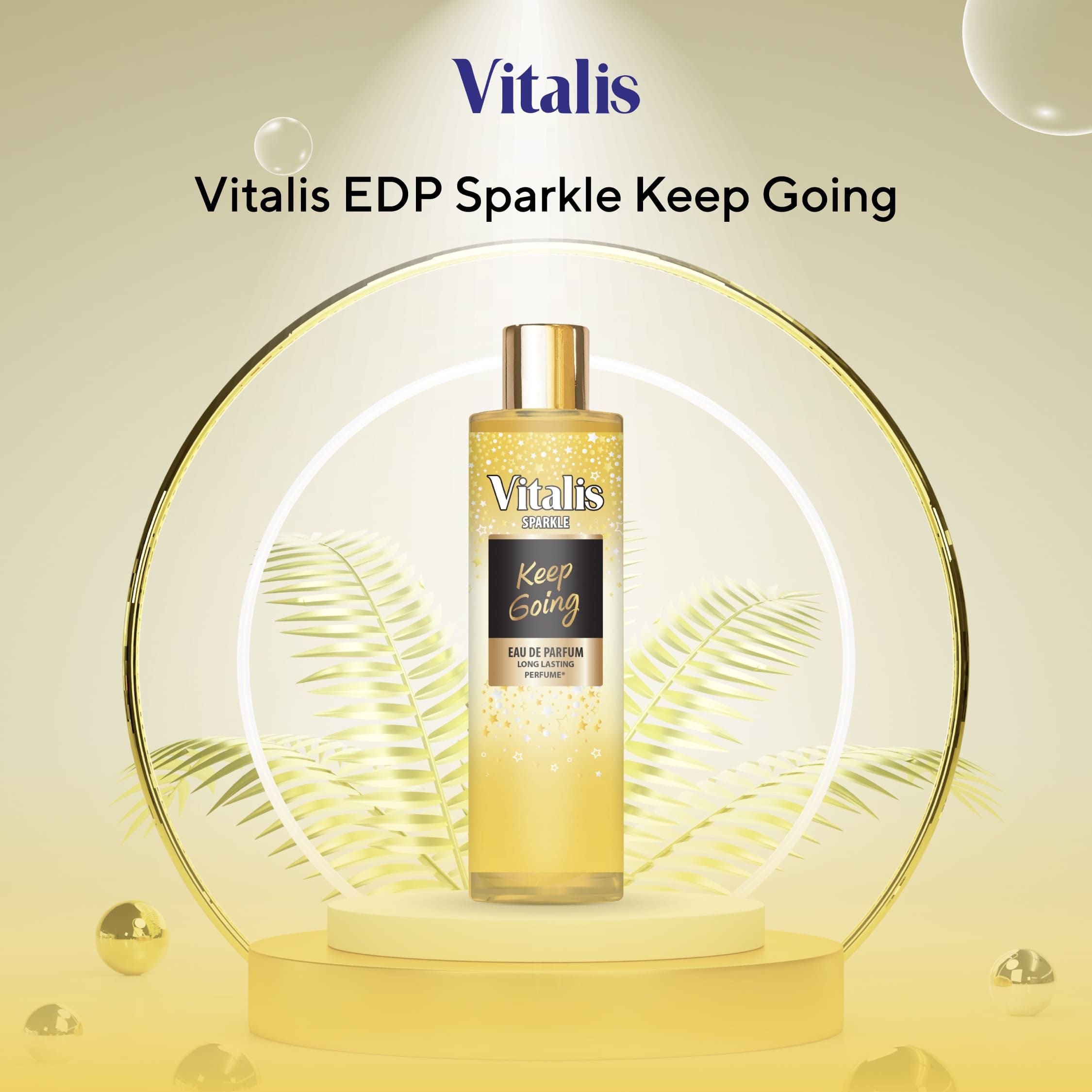 • Vitalis EDP Sparkle Keep Going - Kombinasi juicy green apple, apple blossom, serta aroma gourmand dan amber yang sensual. Pilihan tepat untuk kamu yang energik dan penuh percaya diri!